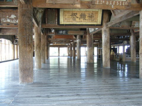 厳島神社の拝観料は¥300。干潮だったため海辺に降りて大鳥居を撮影することができた。もっとも大きなものかと思っていたが、遠目のせいかあまり大きさを感じることはなかった。