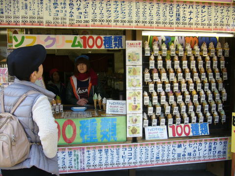 茶店で世界で一番種類が多いと豪語しているアイスクリーム屋でゆずソフトを買ってみた。いつものように二人で1コだが、味は普通だが、量が多かったので、これで十分。