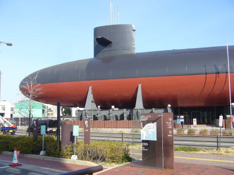 ところで、事前に見たガイドブックではミュージアムの隣に展示してある「鉄のくじら館」と称する潜水艦の内部見学ができるとあったので、さっそく行ってみた。受付の女性案内が自衛隊のキャップをかぶっているのを見て気が付いた。ここはミュージアムとは無関係で海上自衛隊の広報の一環らしい。今更引き返すのもと思うと同時に、やっぱり中を見たいという欲望に勝てずにこやかな挨拶に迎えられて入場。見学ルートには爆雷、魚雷、掃海艇などの解説があり、これらを一巡した後で、艦内ツアーへ。