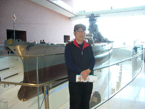 やまとミュージアムはさすがに資料豊富で見どころが多いので駆け足で見るのが難しい。パネル表示が多いし、館内の照明は押さえてあるので目が疲れる。誠子マミーは早くも頭が痛いと文句を言う始末。半分ほど見学した後で、たまたま館内ツアー開始のアナウンスがあり、あわてて参加。これはガイドが口頭で説明してくれるので結構楽チン!約1時間の駆け足ツアーだったが、いろいろエピソードなど交え、面白く聞けた。