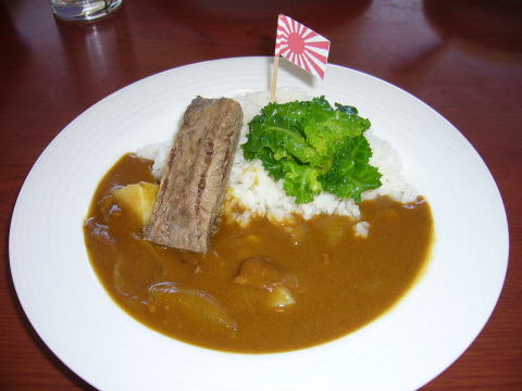 見学を終えてランチ。となりのカフェ(BEACON)で海軍カレーをいただく。カレーには2種類あって、¥980の水兵カレーと¥1480の士官カレー。おすすめを聞いたら士官のほうが人気が高いとのことだったので、こちらを注文。出てきたのをみたらカレーにタンシチューのタンが載っているだけ!だった。良く煮こまれたタンは旨かったが一切れしか載ってないし、コストパフォーマンス的にはどうかな?お子様ランチのように軍艦旗が立っているのがご愛嬌。