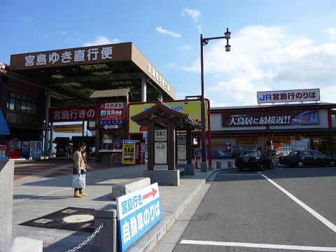 小谷SAで小休止し、宮島に到着したのが9時過ぎ。フェリー乗り場付近の駐車場を探すも、どこもキャンピングカーには優しく無い。フェリー乗り場近辺の駐車場は5mを越える車は基本はお断り、OKの場合でもマイクロバス並みの¥3000を要求される。教えられた¥1000の駐車場を探し回るもダメだった。やむなく涙を呑んで¥3000支払いフェー乗り場に一番近いところに駐車。どうも今日は出だしからついてない。今朝の星占いでは好機とあったのに。でも駐車場はスペースを広く取ってくれてドアを開けても他の車と接触しないようポールを立てるなど丁寧な対応ではあった。