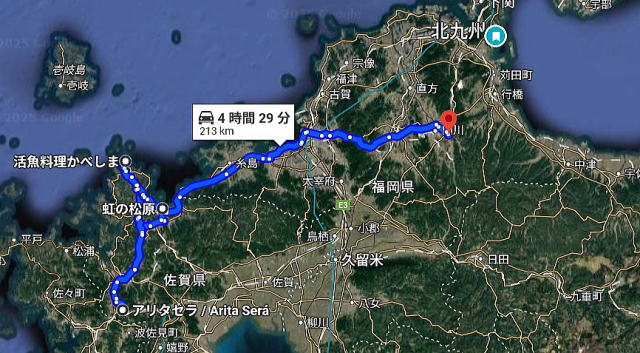 さて話変わって、今日は朝からよく晴れて陽が眩しい。本日の予定は有田で陶器を見ること、次に呼子で美味しいイカ料理を食すること。