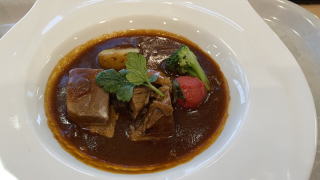 結局は誠子はホッケ定食、私はビーフシチュー単品(ご飯なし)を選択。ホッケはあまり美味しそうには見えず。ビーフシチューは肉が2ヶ。それもサイコロのように綺麗な断面のブロック。見るからにうまそうには見えず。食べたらしっかり煮込んであり、味はどこか懐かしいものだった。お値段は合計\3100.