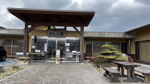 最寄りの日帰り温泉に行けば食事はできるかもと行ってみた。訪れたのは「虹の宿 花景色 虹の湯」という大層なネーミングの施設。名前からかなり立派なところだろうなと思っていたが、到着したら何と茅葺き屋根のかなり趣のある温泉だった。