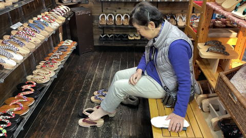 日田は天領で杉の名産地のため、下駄が特産品となっている。今更下駄かよ!と思ったが、子供の頃から履き慣れているとのことで、どうしても欲しいらしい。結局かなり時間をかけてここで一足お買い上げ。