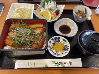 迷わず「太刀魚重」を。誠子マミーはこれに「太刀魚のお造り」を追加。太刀魚重は予想に違わず美味だった。太刀魚を蒲焼のようにしつらえてあり、タレも濃いめでご飯に合う。穴子丼と鰻丼の中間と考えると分かりやすいかも。ご飯を少なめしてもらったので最後まで飽きず美味しく完食。日田まぶしで若干期待外れだったのが、少し挽回なった。