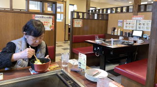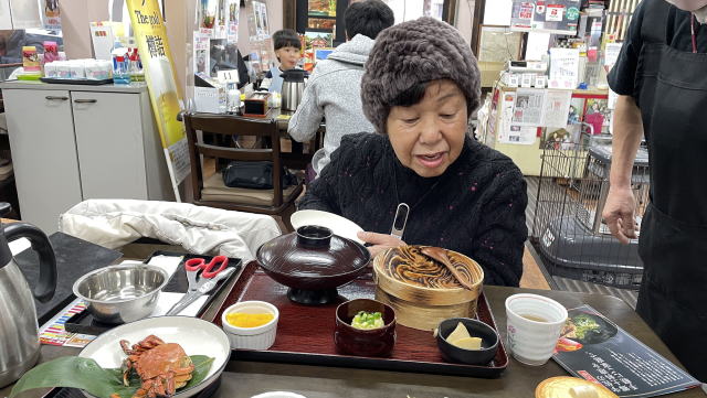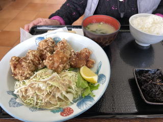 ここで私は「カラてん定食」、誠子マミーは「ズガニ定食」を注文。カラてんとは、唐揚げと鶏の天ぷらがせっとになって、それに団子じると茶碗蒸しが付く。ズガニ定食は茹でた甘辛く煮たズガニ一匹と「ズガニ汁」、ズガニの炊き込み飯とズガニ尽くし。小さいカニを食べるのが面倒そうなので私は敬遠。誠子マミーは郷土料理にチャレンジと頑張った。ズガニはどれも美味しかった由。私のカラてんは予想通りの味だったが、大きさが年寄り向きに小さいのがありがたかった。