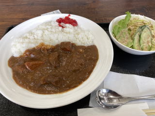 事前にガイド本で調べたところ、ここは豊後牛グルメが売りとのことだったので、早速「すき焼き」を探す。メニューには焼き肉はあるが、すき焼き類は無い。情報が古かったのかも。やむなく豊後牛入りビーフカレーにした。一応小ぶりのビーフが4つほど入っていた。ポテト、人参入りのいわゆる家庭的なカレー。誠子マミーは唐揚げ定食。大分ではとにかくどこへ行っても唐揚げがメイン。出来立ての熱い唐揚げを食べてみたいと挑戦したということ。大ぶりの唐揚げが5個も皿に乗っていて、みるからにヘビー。1コだけ分けてもらったが、やはりお弁当の添えについているのと違って揚げたては旨い。でも私は1コで十分。ところで道の駅の名前にある童話の里の意味は最後まで不明。(注)