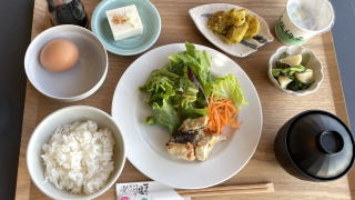 誠子マミーは魚定食。コレが一番一般的な朝食になる。私はどれも好みでは無いので不要と申告したが、すで支払い済みとのことで、やむなく量が少ないと思われるコレにした。