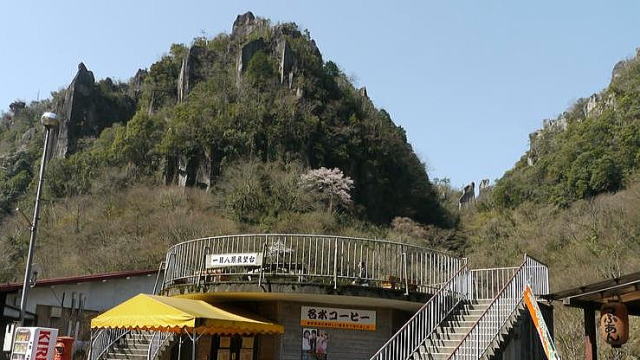 ここで耶馬溪全体の地図をもらって調べたら、ここを拠点に歩いて回れるような狭い地域ではなく、車で移動する前提だった。「青の洞門」を見たかったのだが、すでに通過してしまったので、奥耶馬溪にある「一目八景」へ行ってみることに。車で40分ほど。「奥耶馬溪観光案内所」の駐車場に停めて、案内所へ。ここの係のお姉さんがとても親切で、詳しく教えてくれた。耶馬渓だけでなく豊後高田の菜の花の名所まで。